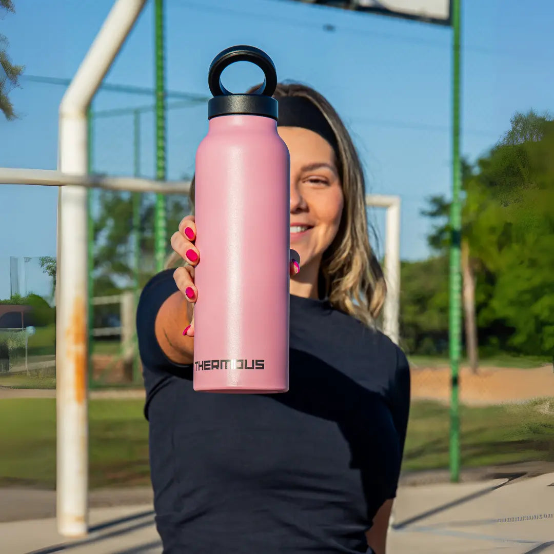 Descubra a Thermous 750ml, a garrafa térmica que mantém sua bebida quente ou fria por horas.